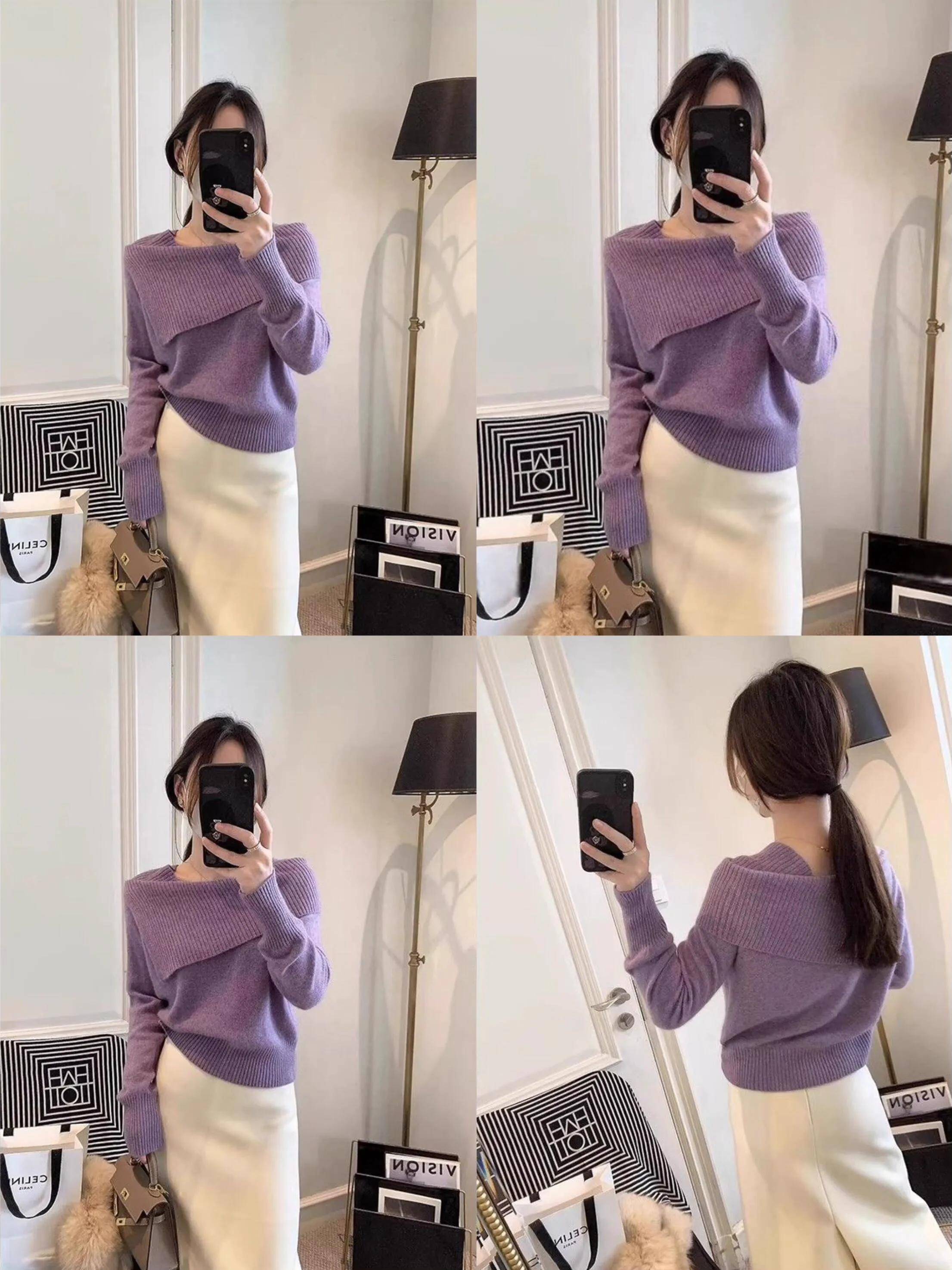 秋风起时,紫色毛衣成了童话里的魔法衣。
